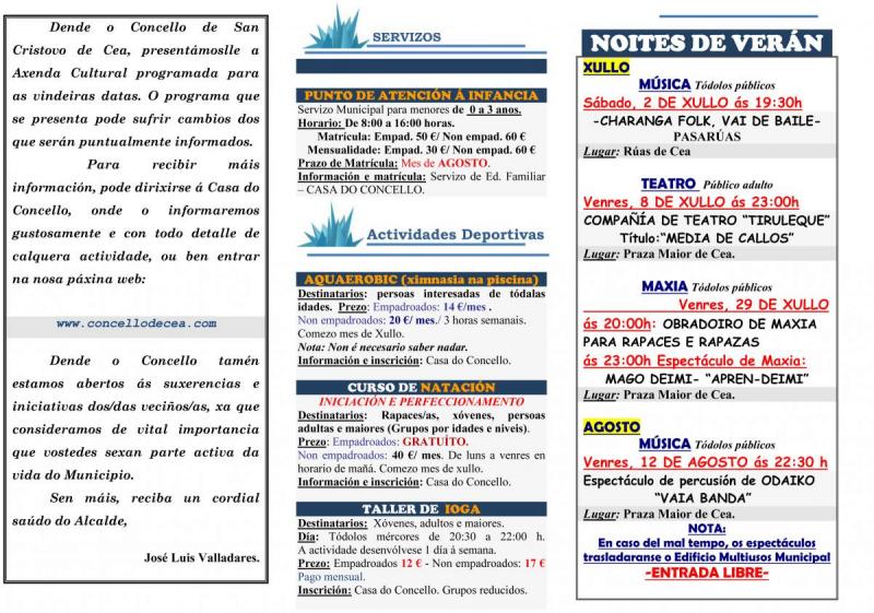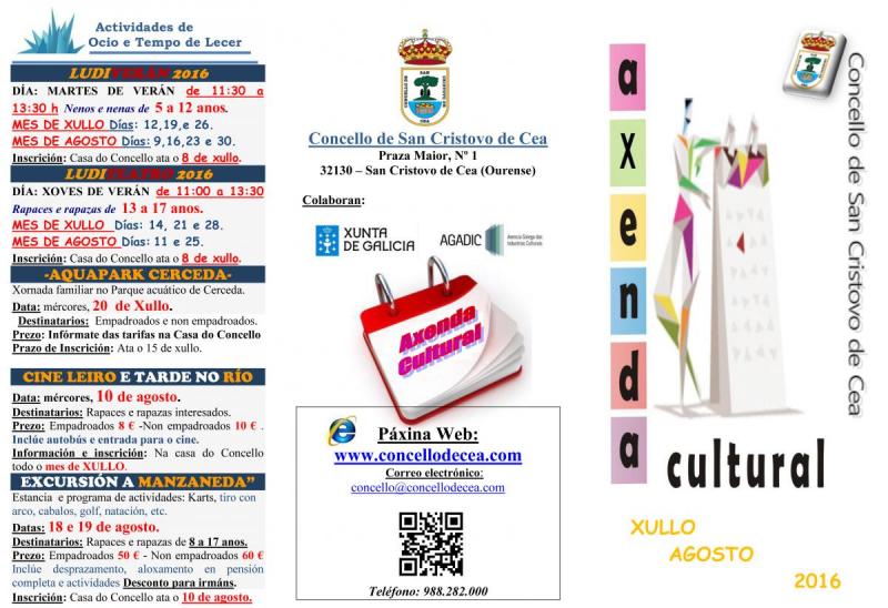 06.07.2016 .- Dispoñible no apartado Axenda Cultural a programación para os meses de xullo, agosto e setembro. Preme ns imaxes para ampliar información.